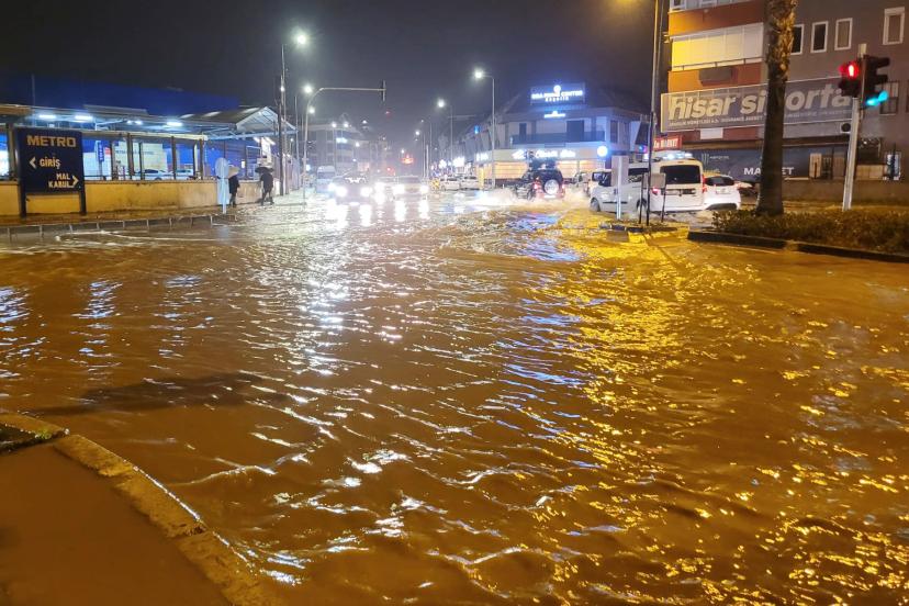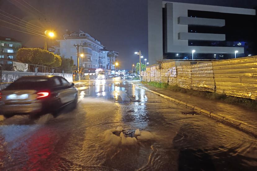 ANTALYA'nın Alanya ilçesinde etkili olan sağanağın ardından taşan Oba Çayı ilçe merkezindeki bazı yollarda taşkınlara neden oldu.
