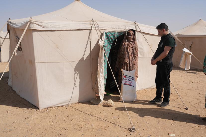 Şişman, "Avrupa Yetim Eli olarak Sudan'dayız. Şu an başkentten 600 kilometre uzaklıkta bulunan Atbara kampındayız. Hayırseverlerimizin emanetlerini, savaştan kaçarak buraya sığınan ihtiyaç sahibi kardeşlerimize ulaştırıyoruz." dedi.