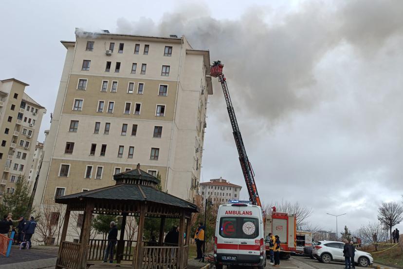 Batman'ın Kardelen Mahallesi Emekli TOKİ mevkiinde bulunan 8 katlı bir binanın çatı katında henüz bilinmeyen bir nedenle yangın çıktı.