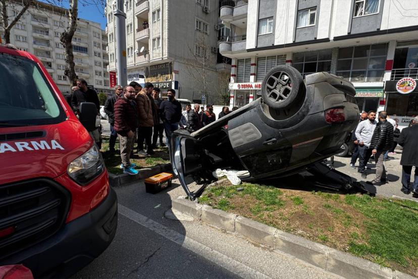 Batman'da seyir halindeki bir otomobil, sokaktan çıkan başka bir otomobile çarptı. Çarpışmanın etkisiyle takla atan her iki araçta buluna 2 kişi yaralandı.