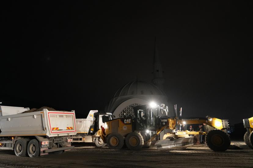 Çalışmalar kapsamında cami çevresinde yeni yol düzenlemesi yapılırken, alt temel serimi gerçekleştirilerek zemin altyapısı güçlendirildi.