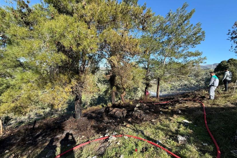 MUĞLA'nın Bodrum ilçesinde, çam ağaçlarının bulunduğu arazide yakılan temizlik ateşinin kontrolden çıkması sonucu yangın çıktı. İtfaiye ve orman ekiplerinin hızlı müdahalesiyle alevler kısa sürede söndürüldü.