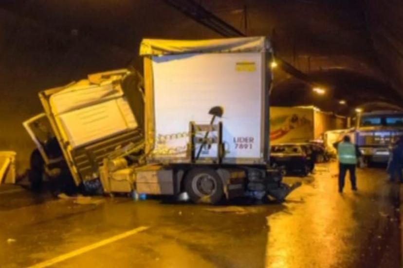 Bulgaristan'ın başkenti Sofya'daki otoyolda arıza nedeniyle yol kenarında duran tır'a arkadan gelen başka bir tır çarptı.