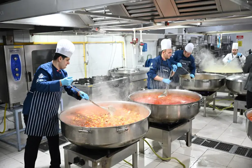 Hijyenik, steril ve titizlikle denetlenen üretim alanlarında hazırlanan yemekler ve tatlılar, ekipler tarafından sabit iftar noktalarına, Kent Lokantalarına ve ilçe iftar programlarına ulaştırılıyor.