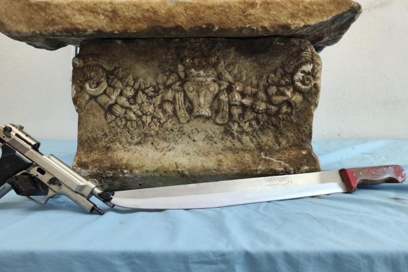 Operasyon sonucunda yapılan adli aramada; bir kurusıkı tabanca, bir bıçak, Antik Roma ve Bizans dönemine ait bir lahit ve Bizans dönemine ait bir obje ele geçirildi.