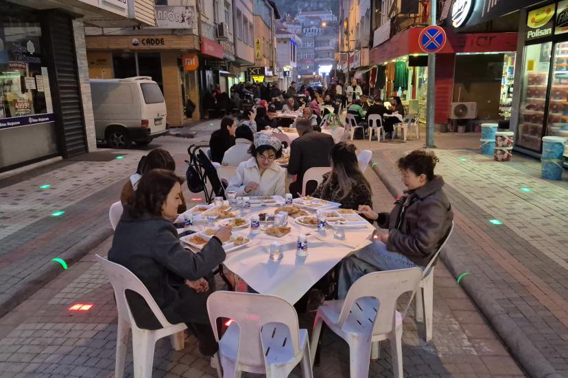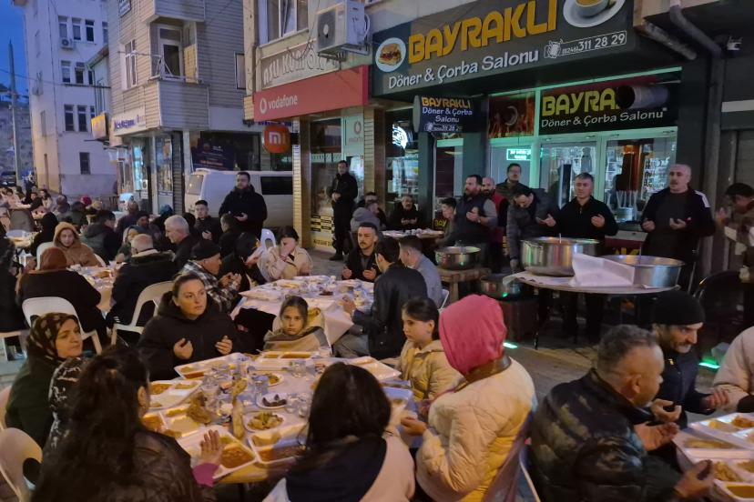 Cami Mahallesi Belediye Caddesi'ndeki esnaf tarafından düzenlenen ve geleneksel hale getirilmesi planlanan iftar yemeği, yoğun katılımla gerçekleştirildi. Programa Kaymakam Ömer Çimşit, Belediye Başkanı Mustafa Özer, cadde esnafı ve çok sayıda vatandaş katıldı. Samimi bir ortamda gerçekleşen iftar yemeğinde katılımcılar, Ramazan ayının paylaşma ve kaynaşma ruhunu hep birlikte yaşadı. Cadde esnafı iftar programını her yıl tekrar ederek geleneksel hale getirmeyi hedeflediklerini anlattı.