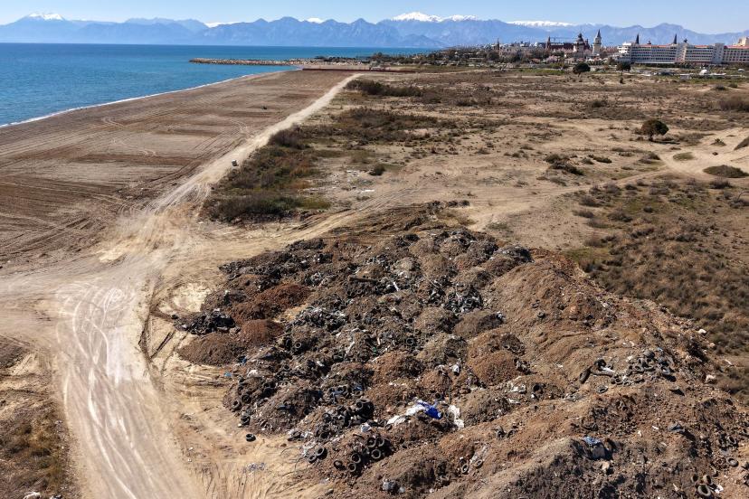 Aksu ilçesinde Aksu Çayı ile Beşgöz Deresi arasında kalan 1,5 kilometrelik sahil bandında yürütülen temizlik çalışmalarında yeni bir çevre skandalı ortaya çıktı. Ormana sınır doğa harikası, nesli tehlike altındaki caretta caretta türü deniz kaplumbağalarının yuvalama alanı Kumköy'de, kumsalın altına araç lastikleriyle yüzlerce lağım çukuru yapıldığı belirlendi.