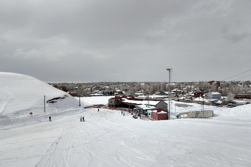 Hava sıcaklıklarının hissedilir şekilde artması beklenen bu dönemde Ağrı’da termometreler hala kış değerlerini gösterirken, vatandaşlar bu durumu avantaja çevirerek kayak merkezinde spor yapıyor.