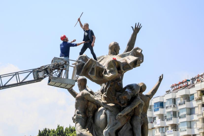 ANTALYA'da elindeki benzin bidonu ile Cumhuriyet Meydanı'ndaki Ulusal Yükseliş Anıtı'na çıkan Ertan Ö.