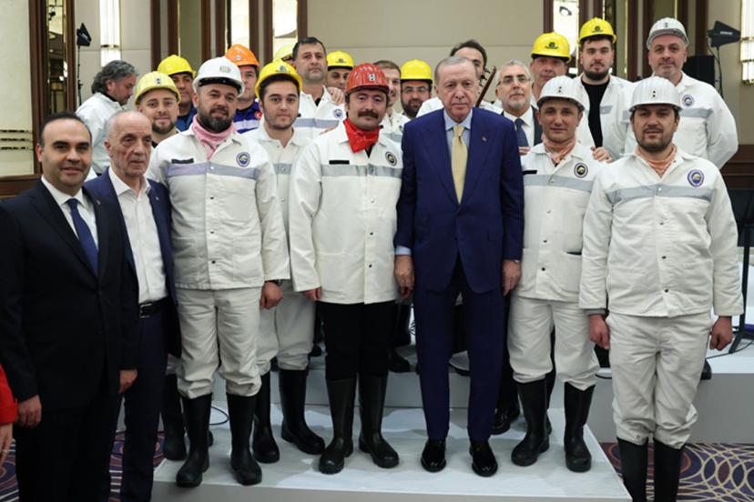 Bu ülkede yıllarca en fazla tartışma konusu olan hususlardan biri olan 1 Mayıs'ı, "Emek ve Dayanışma Günü" olarak resmi tatil ilan ettiklerini ve bütün bu gereksiz tartışmalara son verdiklerini ifade eden Erdoğan, "İşçi kardeşlerimizin daha emniyetli koşullarda çalışmalarını temin etmek için İş Sağlığı ve Güvenliği Kanunu'nu çıkardık. Sendikaların kuruluş şartlarını biz kolaylaştırdık. Sendikalar ve Toplu İş Sözleşmesi Kanunu'nu revize ederek iyileştirdik. Sendikal güvenceleri ve grev hakkını biz güçlendirdik. Kamu görevlilerimize toplu sözleşme hakkı tanıdık. Ana muhalefet partisinin Anayasa Mahkemesi'ne taşıyıp iptal ettirdiği toplu sözleşme ikramiyesini yeniden biz yürürlüğe koyduk. Kamuda başörtüsü yasağını kaldırarak kadınların çalışma hayatındaki hak ve özgürlüklerini garanti altına aldık."Kamu çalışanlarımız artık cuma izni, hac izni gibi haklardan tam ve etkin şekilde yararlanabiliyor." dedi.