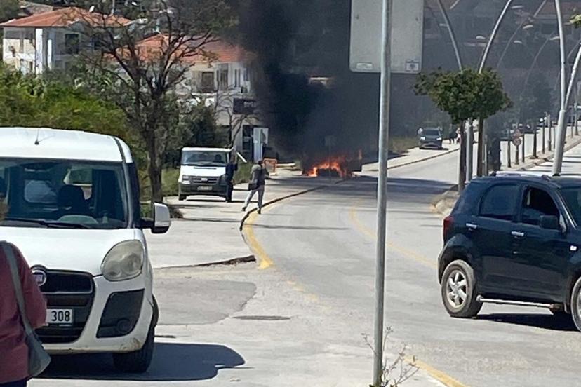 İlk belirlemelere göre elektrik kontağından çıktığı sanılan yangında, alevler kısa sürede tüm aracı sardı. Bu sırada aracında oturduğu öğrenilen sürücüsü alevleri fark eder etmez aracından inip, çevredekilerle birlikte durumu itfaiyeye bildirdi. İhbar üzerine gelen itfaiye ekipleri, alevleri yarım saatlik çaba sönücü söndürürken, araç kullanılmaz hale geldi. Polis, yangınla ilgili soruşturma başlattı.
