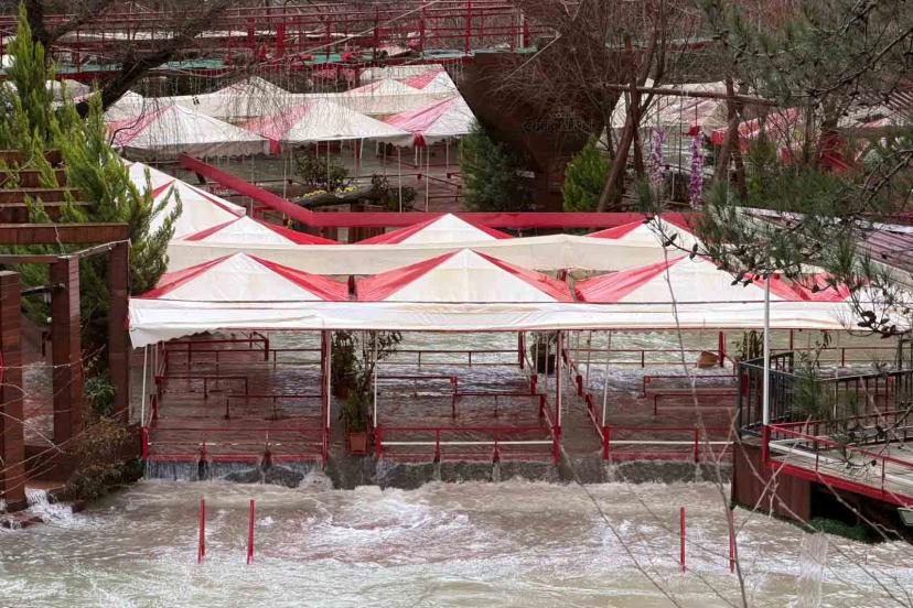 ANTALYA'nın Alanya ilçesindeki Dim Barajı'nda yağışla birlikte tam doluluğa ulaşılması sonrası su tahliyesine başlandı.