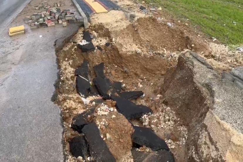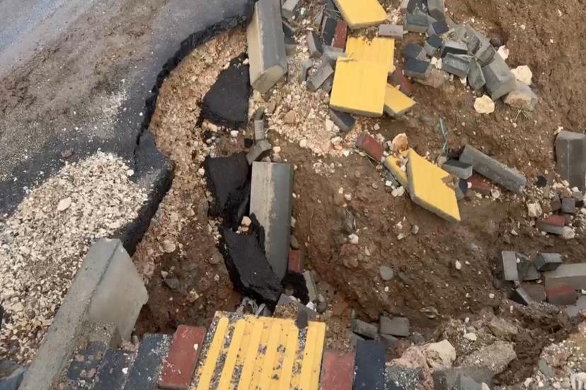 Edinilen bilgilere göre, yağışın ardından zeminin yumuşaması sonucu yolun bir kısmında çukur meydana gelirken, kaldırımda da kısmi hasar oluştu.