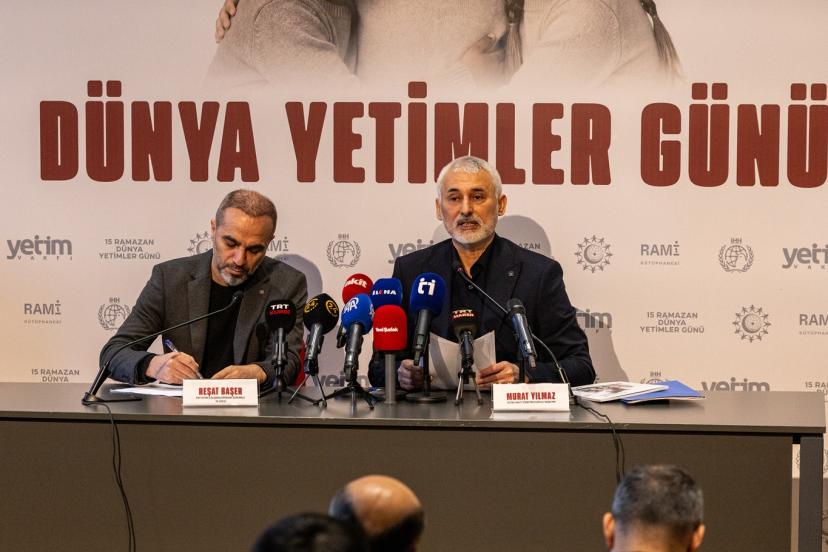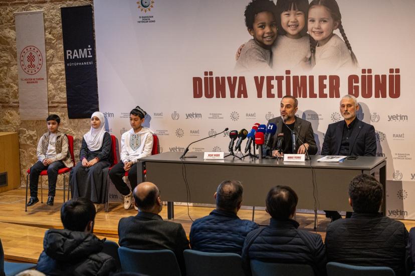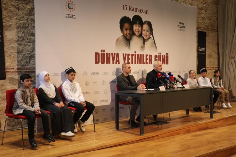Yetim Vakfı ve İHH İnsani Yardım Vakfı tarafından Rami Kütüphanesi'nde gerçekleşen basın toplantısına, sivil toplum kuruluşu yetkilileri ve farklı coğrafyalardan yetim çocuklar katılım sağladı.