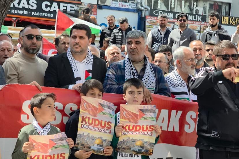 İl Başkanı Durmaz "İşgal rejimi uzun bir süredir Gazze'deki kardeşlerimize yönelik saldırılar, katliamlar, soykırımlar ve baskılar gerçekleştiriyor. Sözde bir ateşkes söz konusu ama bu ateşkes sürecinde de işgal rejimi yüzlerce kez ateşkesi ihlal etti. Şu anda 40 güne yakın bir zamandır Mescid-i Aksa'yı kapalı durumda tutuyor. Buradan ifade etmek isteriz ki ilk kıblemiz ve bizler için kırmızıçizgi olan Mescid-i Aksa'nın kapalı tutulması kabul edilemez." ifadelerini kullandı.