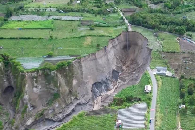 Endonezya'da hızla büyüyen devasa bir obruk, 30 bin metrekareden fazla alanı yuttu.