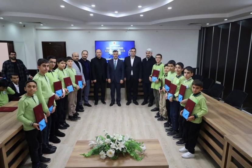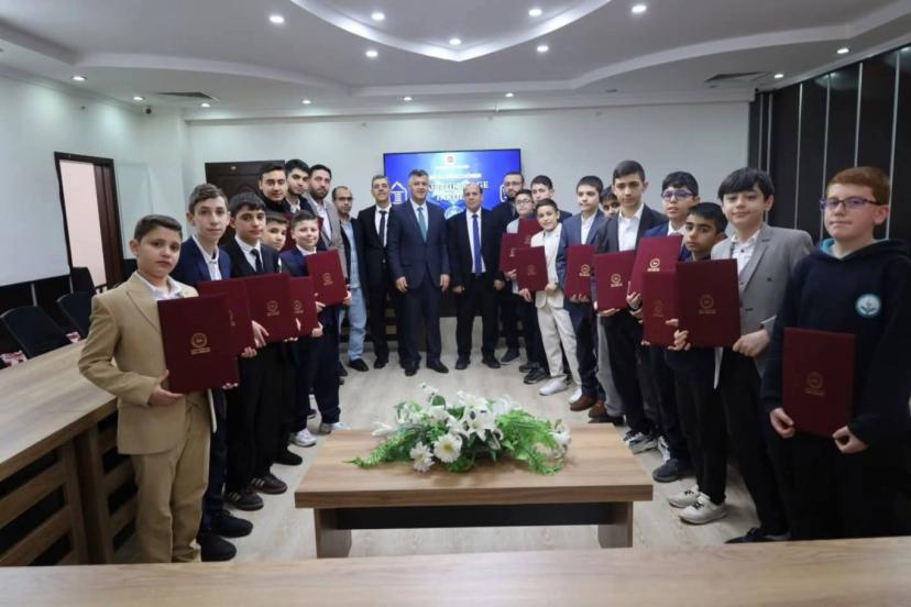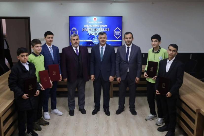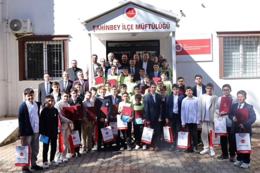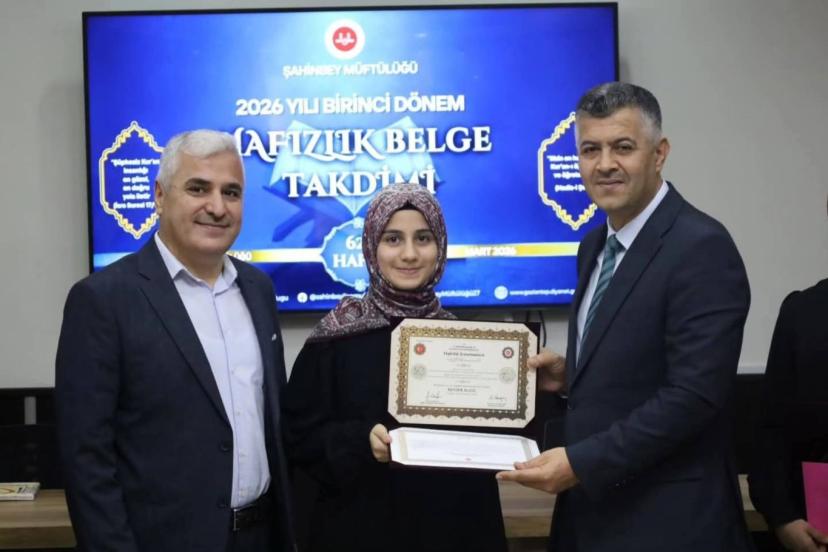 Şahinbey Müftülüğü toplantı salonunda düzenlenen programda, 2026 yılı birinci dönem hafızlık tespit sınavında başarılı olan öğrenciler için hafızlık belgesi ve hediyeler takdim edildi.