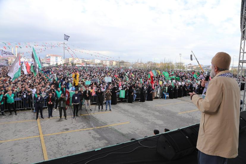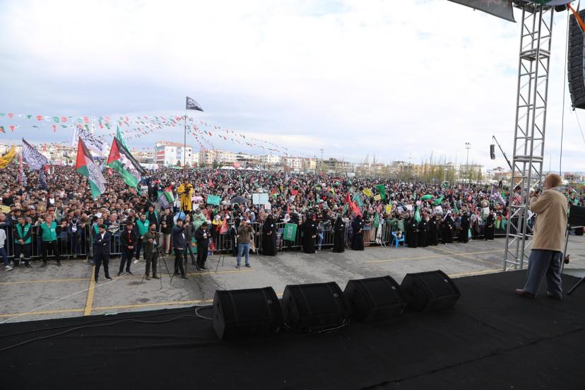 "Muhterem kardeşlerim, onun için bizim, Batman'ın, Diyarbakır'ın, Peygamber Sevdalıları olarak ortaya çıkması öyle bir basit bir şey değildir ha! İyi dikkat edin! Çünkü eğer bir yerde peygamber yoksa işin başında birileri Allah'ın ayetlerini sündürüp sündürüp götürüyor. Krallar çıkıyor diyor ki Allah'ın ipine yani bizim ipimize, bize gelin. Cemaatler diyor ki, gruplar diyor ki, uluslar diyor ki 'efendim bizim ipimize sarılın' Allah'ın ipini kendi ipi olarak görüyor ve onun için ne yapıyoruz parça parça oluyoruz. Onun için muhterem kardeşlerim, işin içine Peygamber'i getireceğiz. Peygamber olmadan, Peygamber'in sireti olmadan, Peygamber'in sünneti olmadan hiçbir yere varamayız. Bunu unutmayalım."
