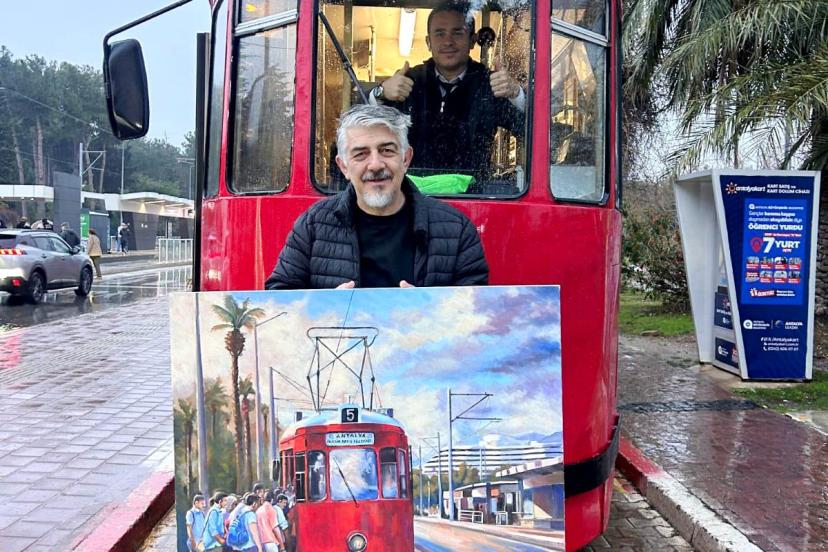 ANTALYA'da yaşayan ressam Ahmet Korkmaz, 5 yıldır her sabah işe gitmek için aralıksız bindiği nostalji tramvayını tuvaline taşıdı.