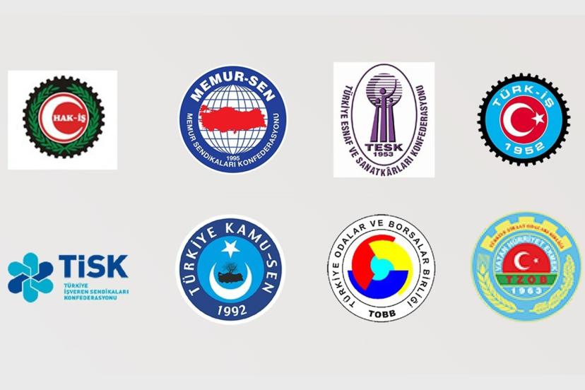 Açıklamaya, Hak İşçi Sendikaları Konfederasyonu (HAK-İŞ), Memur Sendikaları Konfederasyonu (MEMUR-SEN), Türkiye Esnaf ve Sanatkârları Konfederasyonu (TESK), Türkiye İşçi Sendikaları Konfederasyonu (TÜRK-İŞ), Türkiye İşveren Sendikaları Konfederasyonu (TİSK), Türkiye Kamu Çalışanları Sendikaları Konfederasyonu (Türkiye KAMU-SEN), Türkiye Odalar ve Borsalar Birliği (TOBB) ve Türkiye Ziraat Odaları Birliği (TZOB) imza attı.
