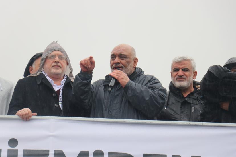 Yağış ve soğuk hava nedeniyle STK'lar adına yalnızca İHH Genel Başkanı Bülent Yıldırım'ın konuşma yaptığı programda, İslam ülkelerinin birbirleriyle uğraşmak yerine bir olup işgale karşı ortak hareket edilmesi çağrısında bulunuldu.