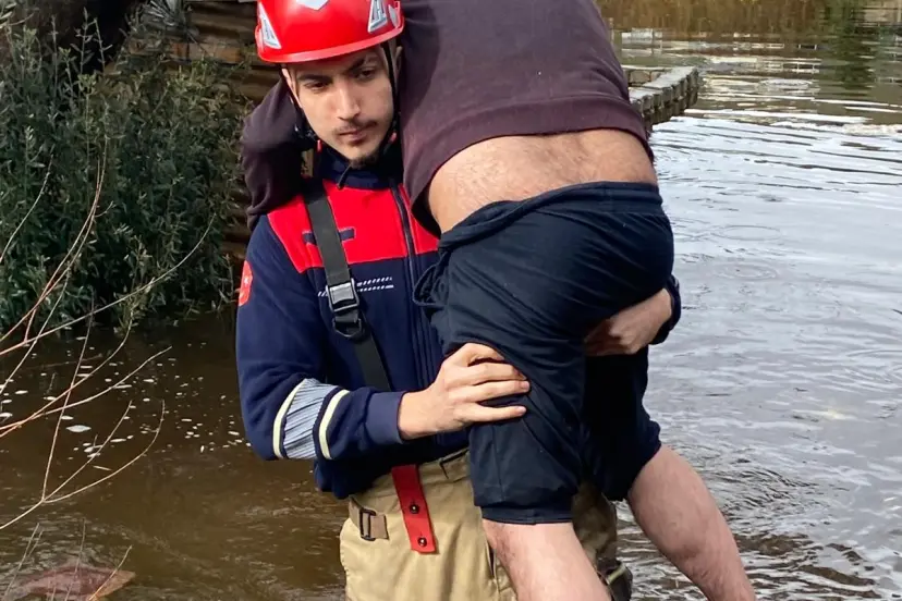 İtfaiye eri Alper Aksular araziyi kaplayan suyun ortasında yalnız kalan D.D’yi sırtına aldı. Bel hizasındaki suyu aşarak güvenli alana doğru ilerleyen Aksular, ekip arkadaşlarının yardımıyla mağduru sudan çıkardı. Ekipler tarafından güvenli alana çıkarılan D.D’nin ilk kontrollerinde sağlık durumunun iyi olduğu ve herhangi bir tıbbi müdahaleye ihtiyaç duymadığı tespit edildi.