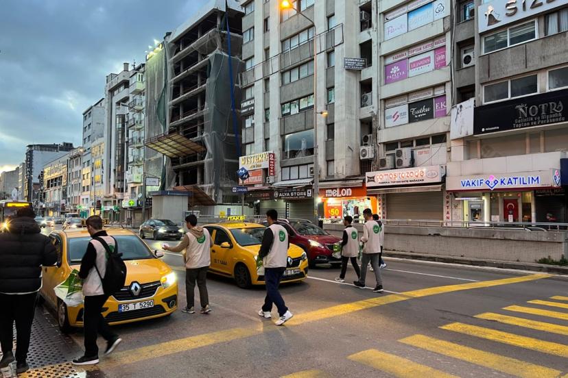 HÜDA PAR İzmir Gençlik Kolları, şehir trafiğindeki sürücü ve yolculara iftarlık paketleri dağıttı.