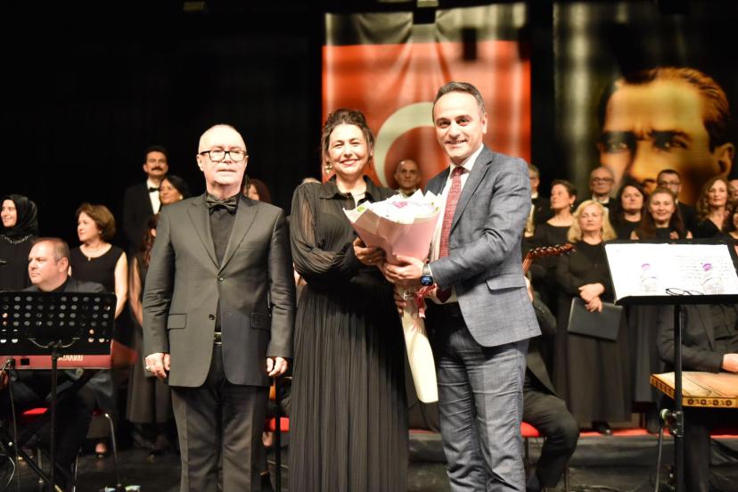 Kepez’de kültür ve sanat etkinlikleri kapsamında düzenlenen Selami Şahin Şarkıları Gecesi, Erdem Beyazıt Kültür Merkezi’nde müzikseverleri bir araya getirdi. Kepez Belediyesi Türk Sanat Müziği Topluluğu’nun sahne aldığı konser, sanatseverlerin yoğun ilgisiyle karşılandı. Salonu dolduran izleyiciler, Türk sanat müziğinin en seçkin eserleriyle dolu unutulmaz bir akşam yaşadı. Gecenin koro şefliğini üstlenen Eda Öztürk Çetin yönetimindeki topluluk, güçlü yorumları ve sahne uyumuyla büyük beğeni topladı. Programda, Türk müziğinin usta isimlerinden Selami Şahin’in hafızalara kazınan eserleri seslendirildi. 'Gitme Sana Muhtacım', 'Tapılacak Kadın', 'Başımın Tatlı Belası', 'Özledim Teninin Kokusunu Özledim' ve 'Gözler Kalbin Aynasıdır' gibi şarkılar, izleyicilerden uzun süre alkış aldı. Duygusal anların yaşandığı gecede, dinleyiciler zaman zaman eserlere eşlik ederek konserin coşkusunu paylaştı. Zengin repertuvarı ve sahne performansıyla dikkat çeken topluluk, izleyenlerden tam not aldı. Programın sonunda Kepez Belediye Başkan Yardımcısı Evrim Yalçın, sahneye çıkarak koro şefi Eda Öztürk Çetin başta olmak üzere tüm sanatçılara teşekkür etti. Yalçın, Başkan Mesut Kocagöz’ün selamını ileterek gecenin anısına sanatçılara çiçek takdim etti.