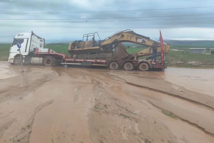 Dün geceden itibaren etkili olan aşırı yağışlar sonucu yol üzerinde çamur ve geniş su birikintileri oluştu.