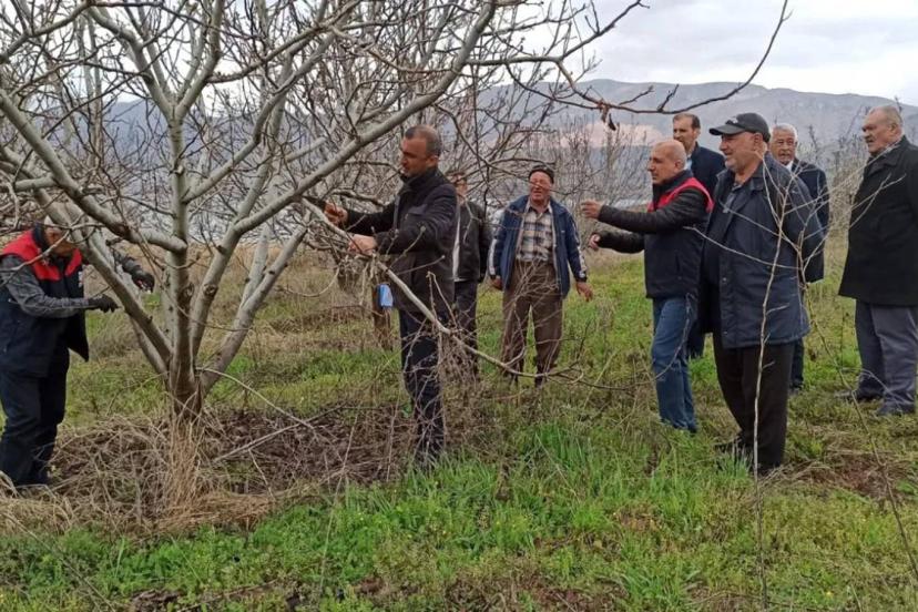 Teknik personel tarafından gerçekleştirilen uygulamalı eğitimlerle, çiftçilerin doğru budama tekniklerini öğrenmesi ve meyve ağaçlarında verim ile kalite artışının sağlanması hedefleniyor. (İLKHA)