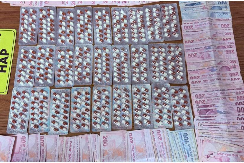 Yapılan aramalarda 457 adet sentetik ecza hap, 227 gram sentetik kannabinoid maddesi, 7 gram metamfetamin maddesi ile uyuşturucu madde satıcılığında elde edildiği değerlendirilen 26 bin 500 TL nakit para ele geçirildi.