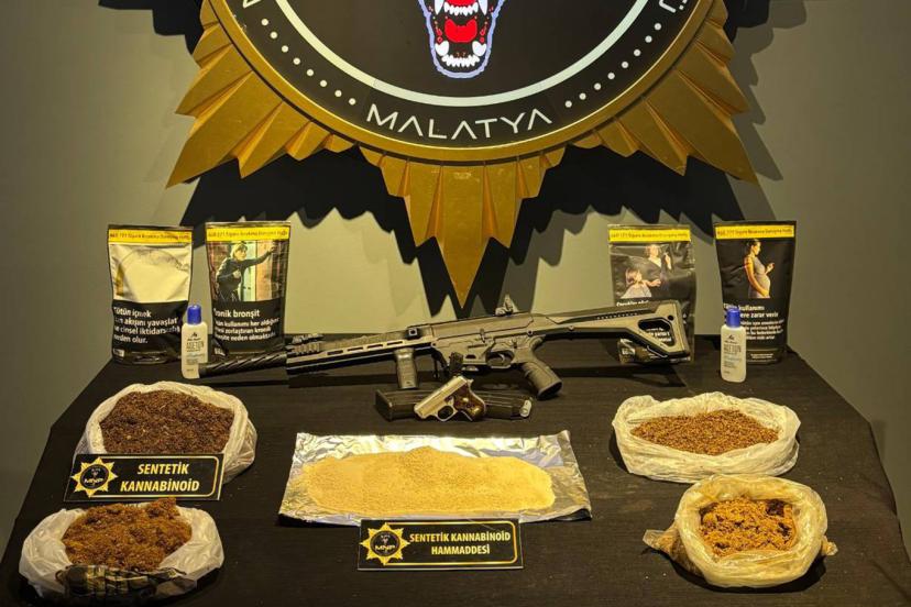 Aramalarda ayrıca 3 adet ruhsatsız tüfek, 1 adet ruhsatsız tabanca, 15 kilogram sentetik kannabinoid yapımında kullanılan kıyılmış tütün ile 400 mililitre aseton maddesi de bulundu.