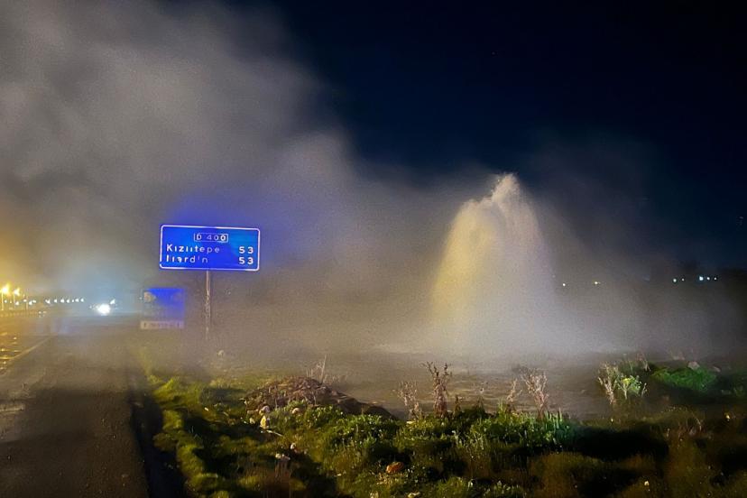 Mardin’in Nusaybin ilçesinde bulunan Beyazsu ana isale boru hattı patladı. Su, metrelerce havaya yükseldi.
