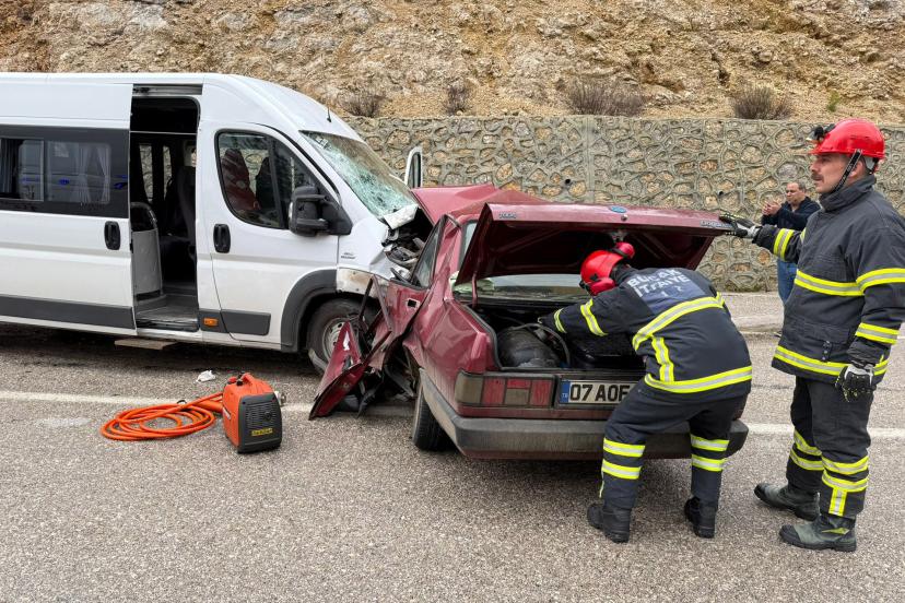 BURDUR'un Bucak ilçesinde minibüs ile kafa kafaya çarpışan otomobilin sürücüsü Mehmet Çelen (26) ve eşi Ceyda Çelen (25) yaşa...