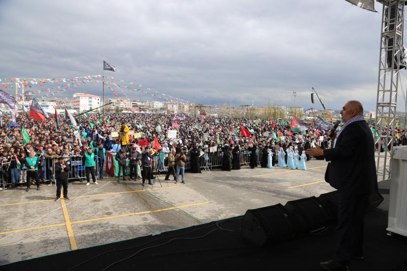 İran'a karşı yürütülen savaşa dikkat çeken Uysal, "İran'ın mücadelesini de tebrik ediyoruz. Onların cesaretlerini de tebrik ediyoruz. 40 gün içinde ne kadar siyonist varsa yerin dibine battılar. Kendilerini gizlemişler. Korkudan dışarı çıkmıyorlar. Fakat İran halkı meydanlardadırlar. Bu da bizlere şunu gösteriyor; Ey Ümmet! Bugün kardeşlik günüdür. Bugün aslanların günüdür. Bugün meydana akın etme günüdür, boş şeylerden, kafirleri sevindirecek şeylerden sakınmamız lazım." şeklinde konuştu.