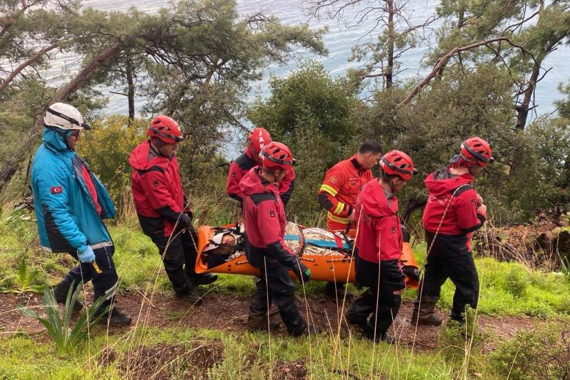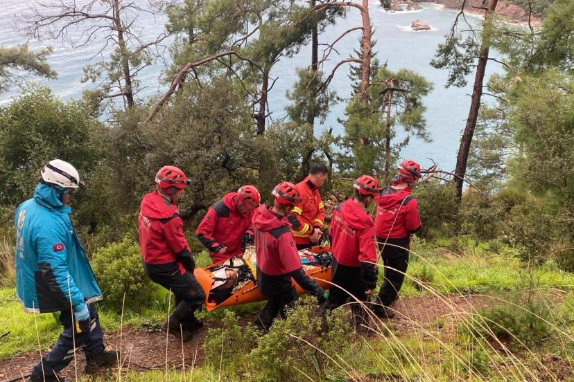 Olay, saat 15.30 sıralarında Faralya Mahallesi Kabak Koyu mevkisinde meydana geldi. Cihan A., iddiaya göre arkadaşına ait çantayı almak isterken dengesini kaybederek kayalıklardan düştü. İhbar üzerine bölgeye Jandarma Arama Kurtarma Ölüdeniz Timi, UMKE ve itfaiye ekipleri sevk edildi. Ekipler, kayalık bölgedeki yaralıya ulaşarak ilk müdahaleyi yaptı. Daha sonra sağlık ekiplerine teslim edilen Cihan A., ambulansla Fethiye Devlet Hastanesi'ne kaldırıldı.