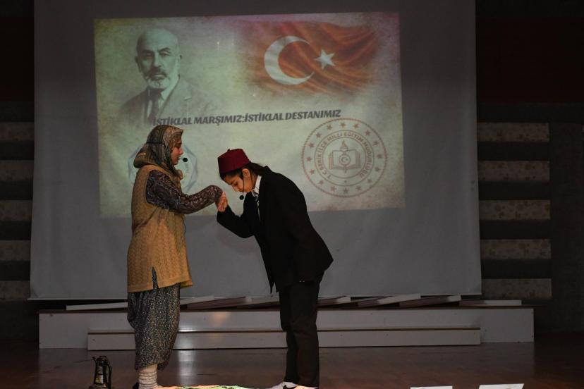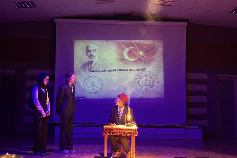 ANTALYA'nın Serik ilçesinde 12 Mart İstiklal Marşı'nın Kabulü ve Mehmet Akif Ersoy'u Anma Günü programı kapsamında öğrenciler 'İstiklal Marşımız ve İstiklal Destanımız' adlı gösterimi sahneledi.