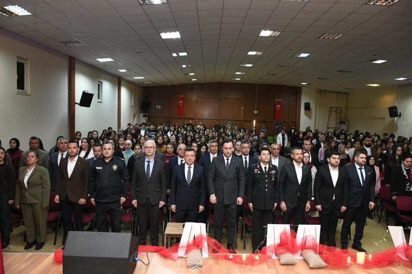 Serik Kız Anadolu İmam Hatip Lisesi Konferans Salonunda düzenlenen programa Kaymakam Cemal Şahin, İlçe Jandarma Komutanı Üsteğmen Ali Duman, İlçe Milli Eğitim Müdürü İkram Ekiz, okul müdürü, siyasi partiler ve STK temsilcileri, öğretmenler, öğrenciler ve veliler katıldı. Saygı duruşu ve İstiklal Marşı'nın ardından öğrenciler tarafından Mehmet Akif Ersoy'un hayatının ele alındığı 'İstiklal Marşımız ve İstiklal Destanımız' adlı gösterim davetlileri duygulandırdı. Program sonunda İl Milli Eğitim Müdürlüğü tarafından düzenlenen okullara arası şiir, kompozisyon ve resim yarışmasında dereceye giren öğrencilere hediyelerini Kaymakam Cemal Şahin ve protokol üyeleri takdim etti.