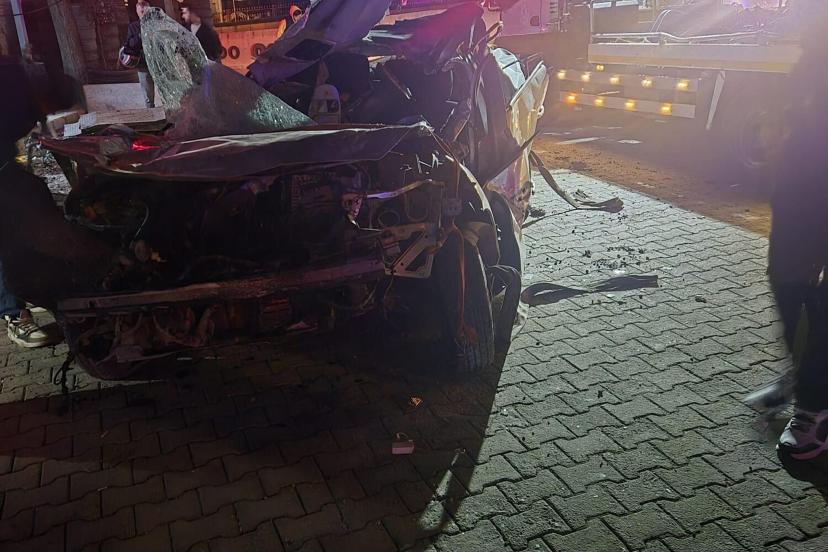 Kaza, saat 01.00 sıralarında Bitez Kavşağı'nda meydana geldi. Harun A.’nın (32) kullandığı 20 ABG 819 plakalı otomobil, sürücüsünün direksiyon hakimiyetini kaybetmesi sonucu yol kenarındaki oto lastik satış mağazasına çarpıp, devrildi. Kazada Harun A. ile yanındaki Hüzeyma A. (22) ve Berkay T. (29) araçta sıkıştı.
