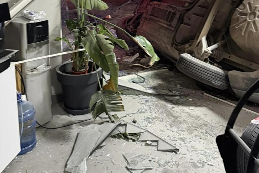 Otomobil, oto lastik mağazasına çarpıp devrildi; 1’i ağır, 3 yaralı