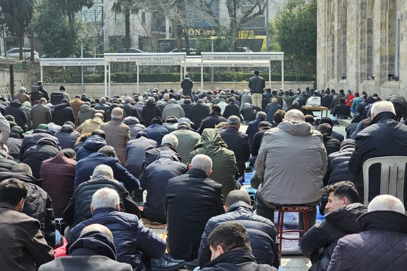 Bursa’da Ramazan ayının son cuma namazı, tarihi Ulu Cami’de cemaatin yoğun katılımıyla eda edildi.