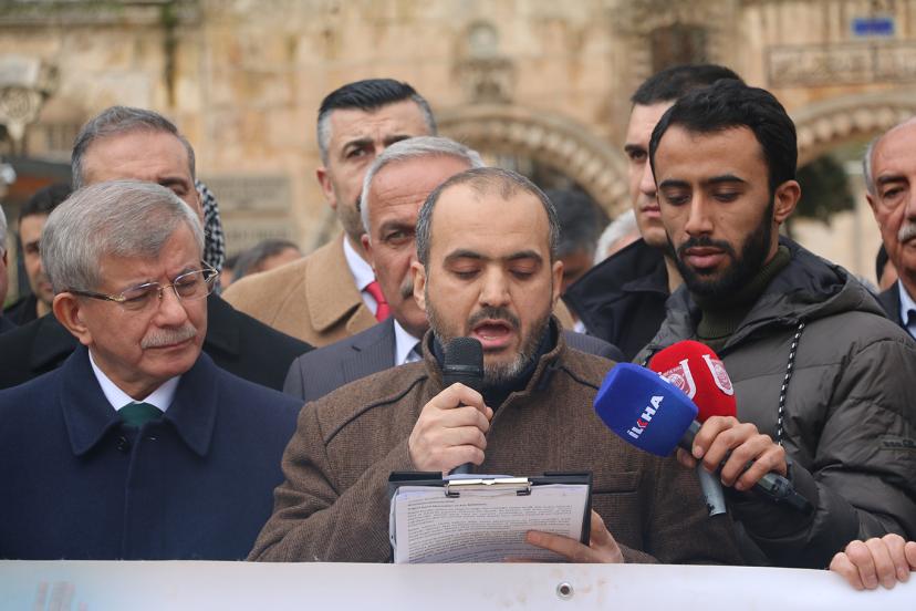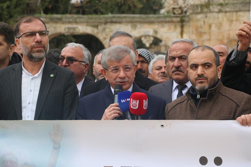 Bazı temasları kapsamında Şanlıurfa’ya gelen eski başbakanlardan Gelecek Partisi Genel Başkanı Ahmet Davutoğlu da Dergâh Camii’nde Cuma namazını kıldıktan sonra basın açıklamasına destek verdi, kısa bir konuşma gerçekleştirdi.