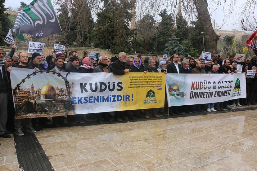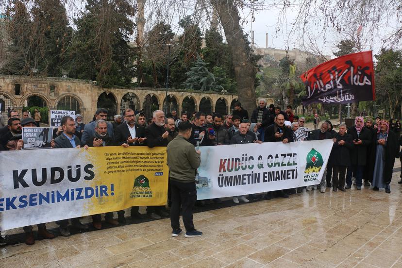 Şanlıurfa’da ‘Dünya Kudüs Günü’ dolayısıyla düzenlenen basın açıklamasında, "Küresel barışın anahtarı Kudüs ve Aksa’nın özgürlüğünden geçmektedir. Siyonizm ve emperyalizmin bu topraklardan sökülüp atılması için tek çare ümmetin vahdetidir." denildi.