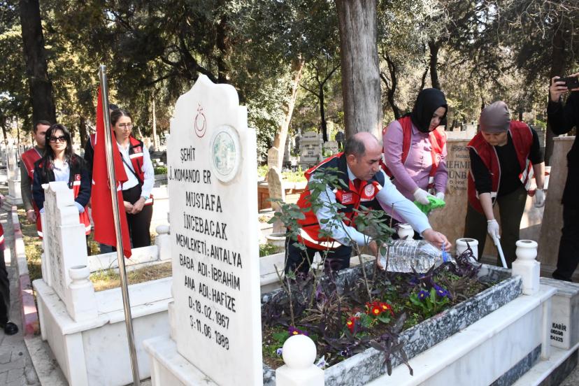 AİLE ve Sosyal Hizmetler Bakanlığı tarafından 81 ilde eş zamanlı başlatılan il müdürlerinin şehit mezarlarını ziyareti programı kapsamında, Antalya'da şehit kabri ziyareti gerçekleştirildi.