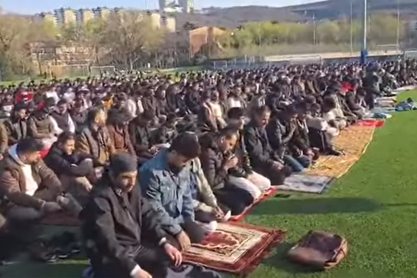 İtalya'nın Trieste kentinde yaşayan muhacir ve gurbetçiler, Ramazan Bayramı'nda büyük bir buluşmaya imza attı. Yoğun katılım nedeniyle bayram namazı camiye sığmayınca futbol sahasında kılındı.