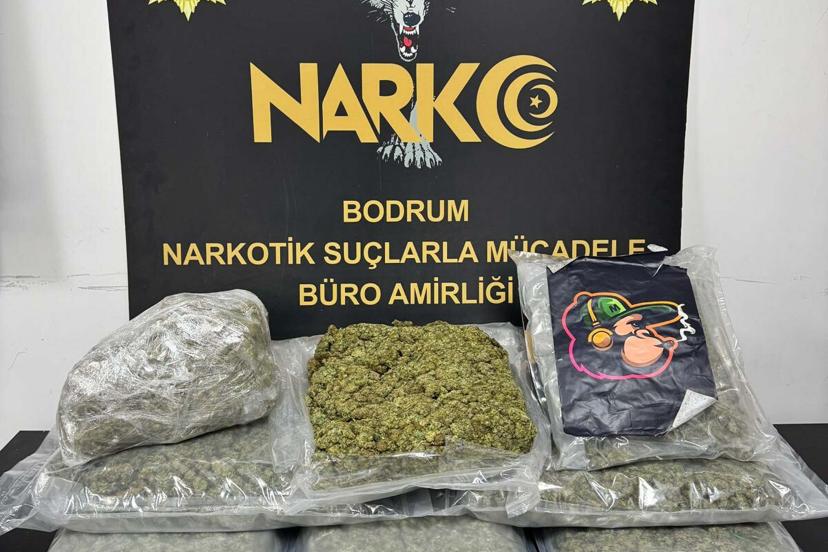 MUĞLA'nın Bodrum ilçesinde, polisin arama yaptığı yolcu otobüsünde 8 kilogram skunk ele geçirildi, 2 şüpheli tutuklandı.