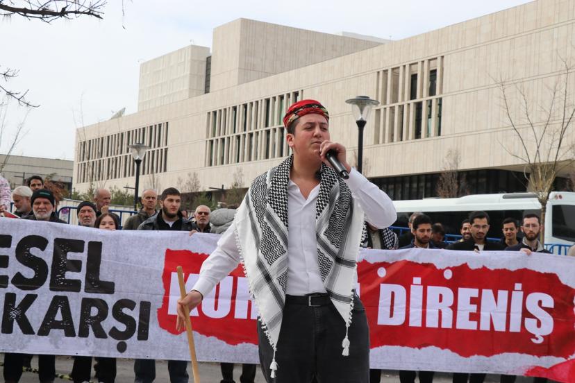 Basın açıklamasının ardından Filistin’de yaşanan zulüm, meddah gösterisiyle anlatıldı.