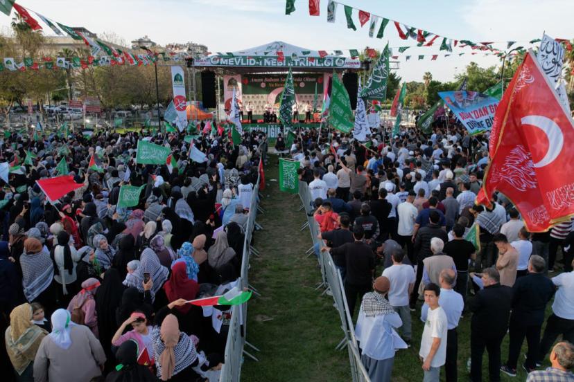 Peygamber Sevdalıları Vakfı tarafından Adana’da düzenlenen Mevlid-i Nebi etkinliği, dron ile havadan görüntülendi. Alanı dolduran kalabalık dikkat çekti.