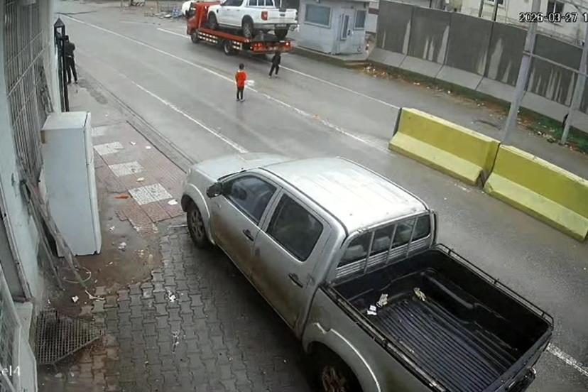 sürücünün yaptığı ani manevra ile kamyonetin altından kalmaktan son anda kurtulan çocuğun görüntüleri, bölgedeki bir güvenlik kamerasına anbean yansıdı.