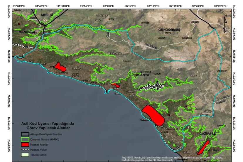 Belirlenen hassas alan ve yol olarak bu noktalarda görev alacak jandarma, polis, zabıta ve Sahil Güvenlik Komutanlığı ekipleri tarafından sera ve bahçe atıklarının yakılması, kontrolsüz insan hareketleri, yoğun turizm faaliyetleri ve kontrolsüz ateş yakılması sonrası oluşabilecek yangınlar, kontrolsüz piknik ve alkol kullanımı, muz atıkları, moloz ve her türlü çöp atılması gibi yangına sebep olabilecek her türlü tehlike önlenecek.